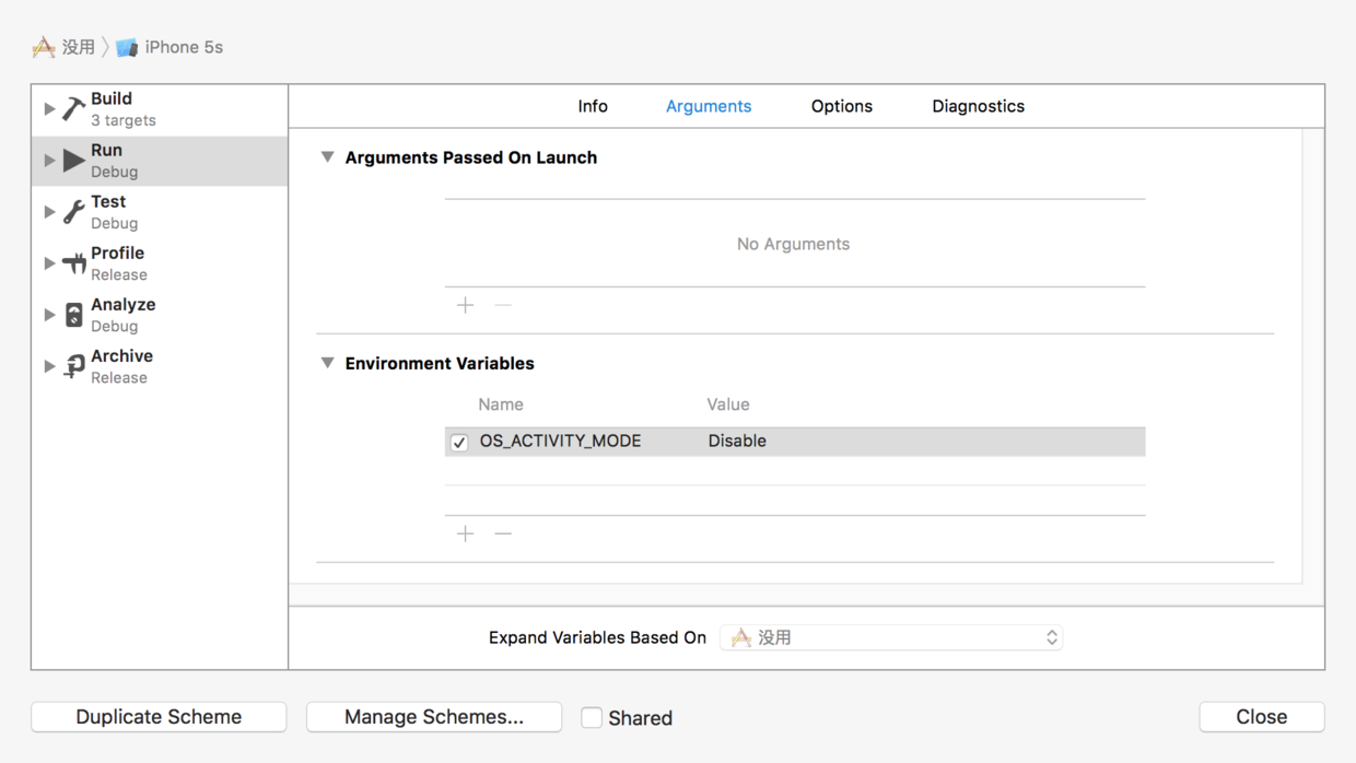 subsystem: com.apple.UIKit, category: HIDEventFiltered, enable_level: 0, persist_level: 0, default_ttl: 0, info_ttl: 0, debug_ttl: 0, generate_symptoms: 0, enable_oversize: 1, privacy_setting: 2, enable_private_data: 0 在Target -> Edit Scheme -> Run -> Arguments中,添加OS_ACTIVITY_MODE字段,并设置为Disable即可。