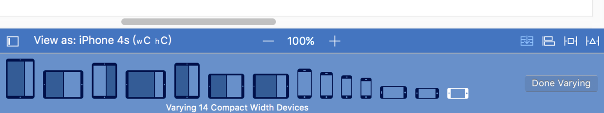 在 Xcode8 中,苹果推出了更加强大的可视化编辑工具预览功能,可以在不运行App的情况下,预览当前XIB或SB在不同屏幕尺寸下的显示。(这个功能我记得之前Xcode就有,只是隐藏的比较深,苹果现在给拿到外面了)
