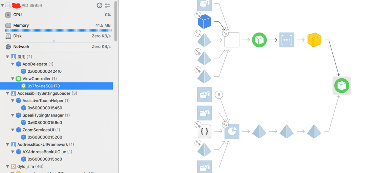 在Xcode6中出现了Debug View Hierarchy新特性,可以通过其调试当前App的视图层级,查找UI相关的bug非常方便。在Xcode8中苹果为开发者提供了Debug Memory Graph特性,通过这个新特性,可以直接选择一个对象,查看与其相关的内存关系。