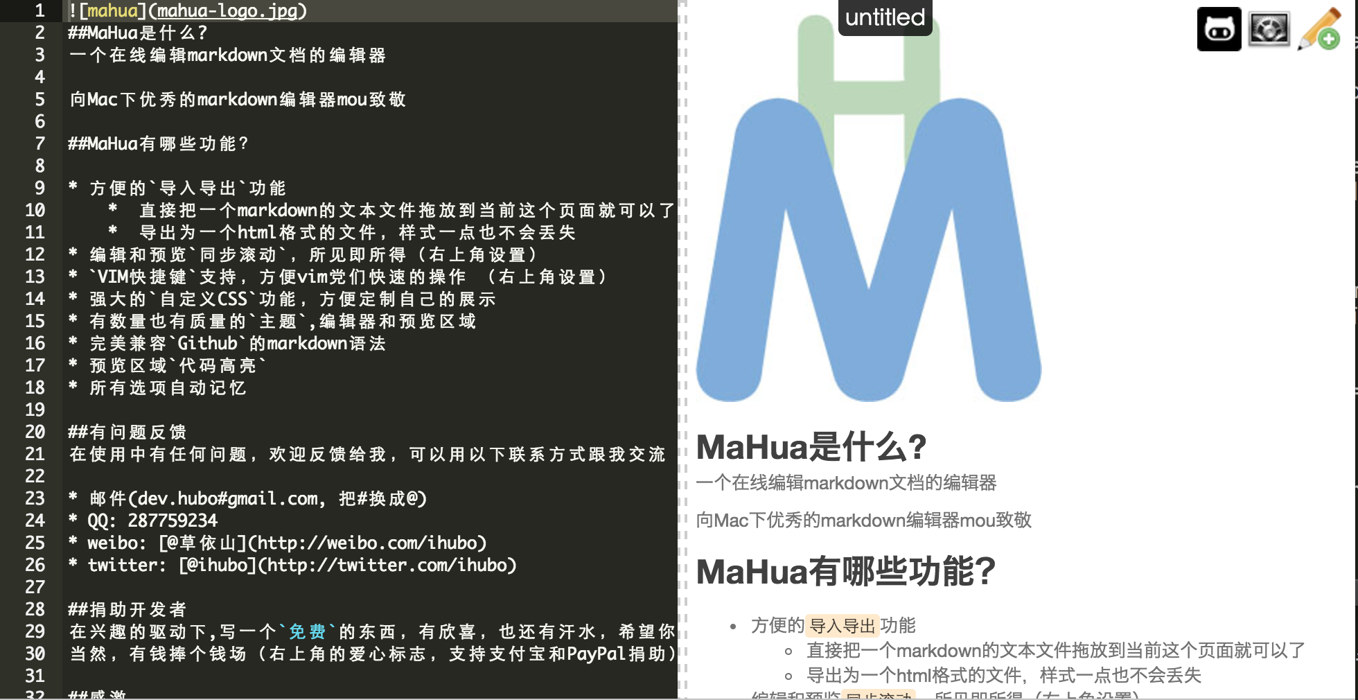 MaHua 在线 Markdown 编辑器 ,无须测试。