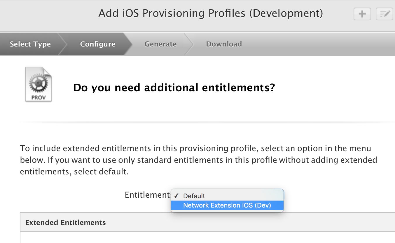 We added a new template containing the Network Extension entitlements to your team.