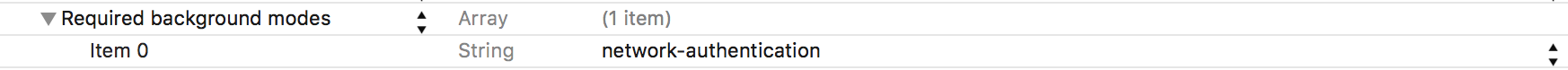 Xcode Info.plist 里 Required background modes 添加 一个 network-authentication(item)