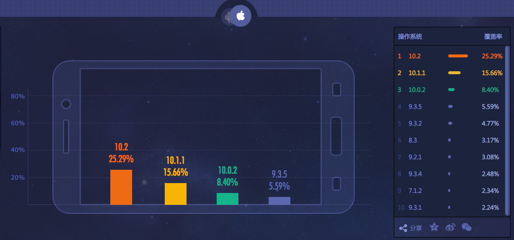 下面付一张来自 TalkingData 对iOS操作系统的统计报表,时间:2017-01-03